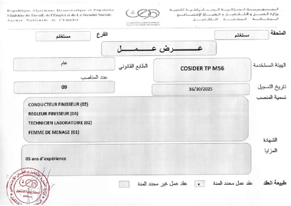 تعلن إدارة شركة كوسيدار COSIDER عن فتح مسابقات التوظيف في العديد من الولايات التالية: